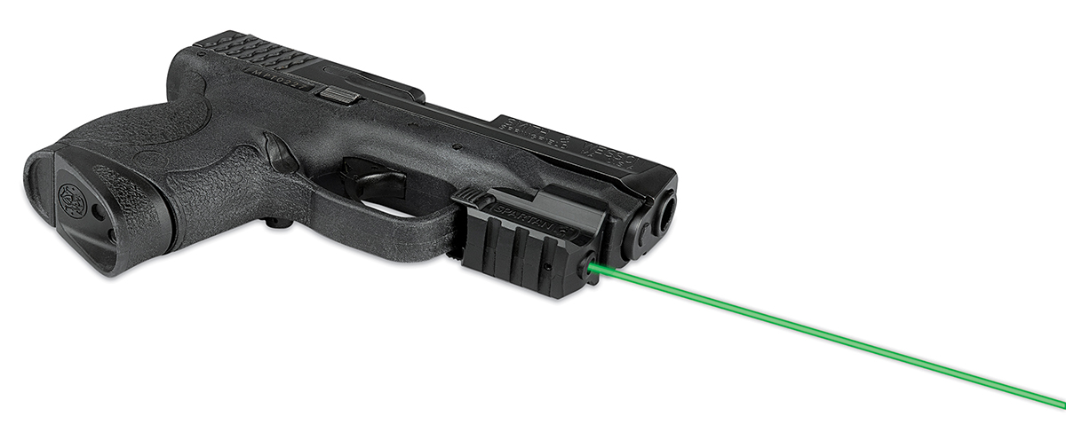 The Spartan Laser series (SRP: $99, red; $149, green) features a mounting system designed specifically for handgun accessory rails, with ambidextrous activation and automatic shutoff after 10 minutes. (lasermax.com)