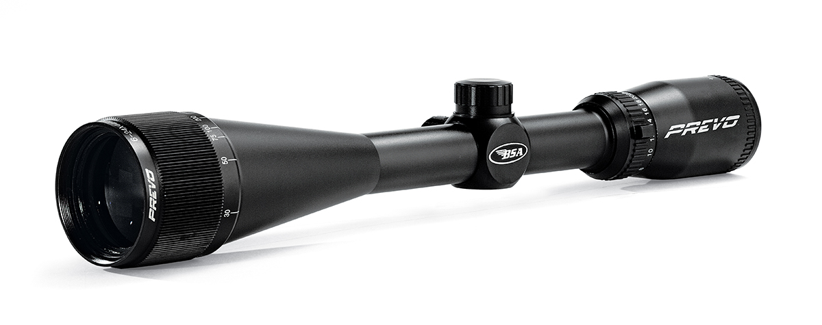 The Prevo hunting scope line is designed for the diehard hunter. Models include the PV3–9x40mm (SRP: $69.95), PV3.5–10x50mm (SRP: $79.95), PV4–16x44mm (SRP: $104.95), and PV6–24x44mm (SRP: $109.95), all of which feature a 30/30 reticle. (bsaoptics.com)