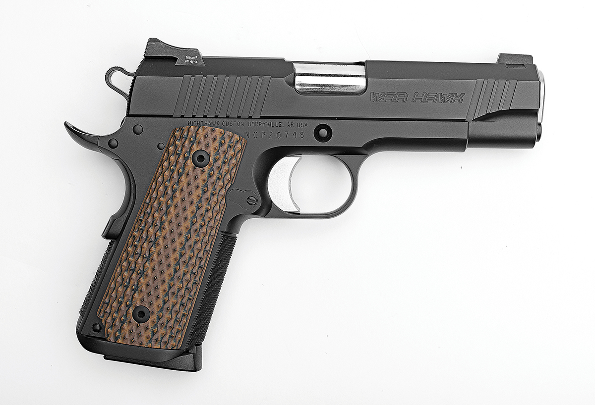 The custom 1911 giant Nighthawk has several new finely crafted pistols for 2016. The Silent Hawk is a Recon-style commander with a Tri-Cut slide, custom cocking serrations to match an Osprey silencer, a threaded barrel, tritium tall suppressor sights, and mid-length grip-screw bushings. It has a total blackout finish and custom NH/Silencer Co. brand logo. SRP: $4,295, .45 ACP; $4,495, 9mm Luger.