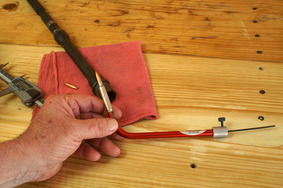 There’s a valuable tool that will let you determine the relationship between your barrel and your bullet, which varies from barrel to barrel and bullet to bullet. Originally conceived by Tom Peterson of Stoney Point, it’s now offered through Hornady as the LNL O.A.L. Gauge.