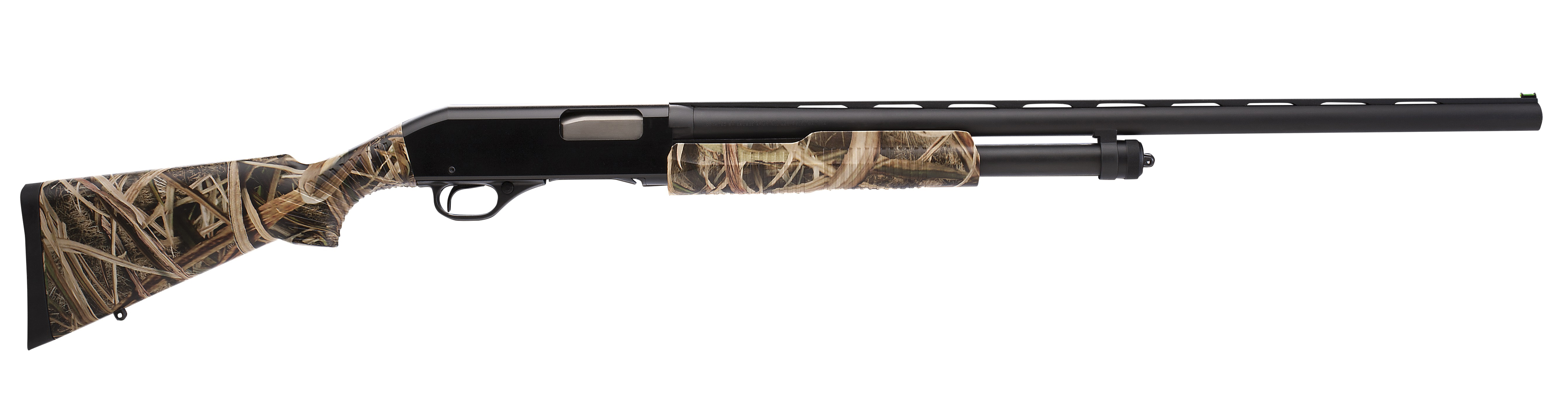 The Mossy Oak Shadow Grass camo 320 series 12-gauge pump shotgun offers dual slide bars, a rotary bolt, synthetic stock, vent rib barrel and a five-round capacity. It features interchangeable chokes, green fiber optic front sight and is available in both standard length-of-pull and compact versions. Two models priced at $273 MSRP will be available.