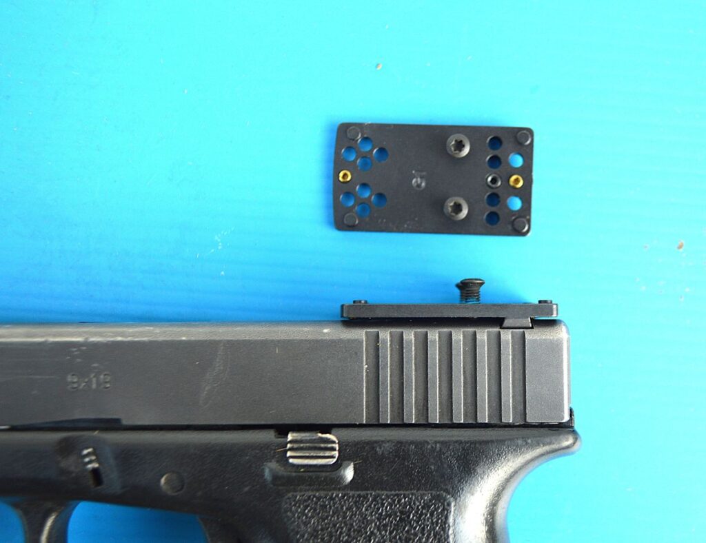 This TruGlo mount slips into the dovetail sight of a 2nd generation Glock. This is teaching an old gun new tricks.