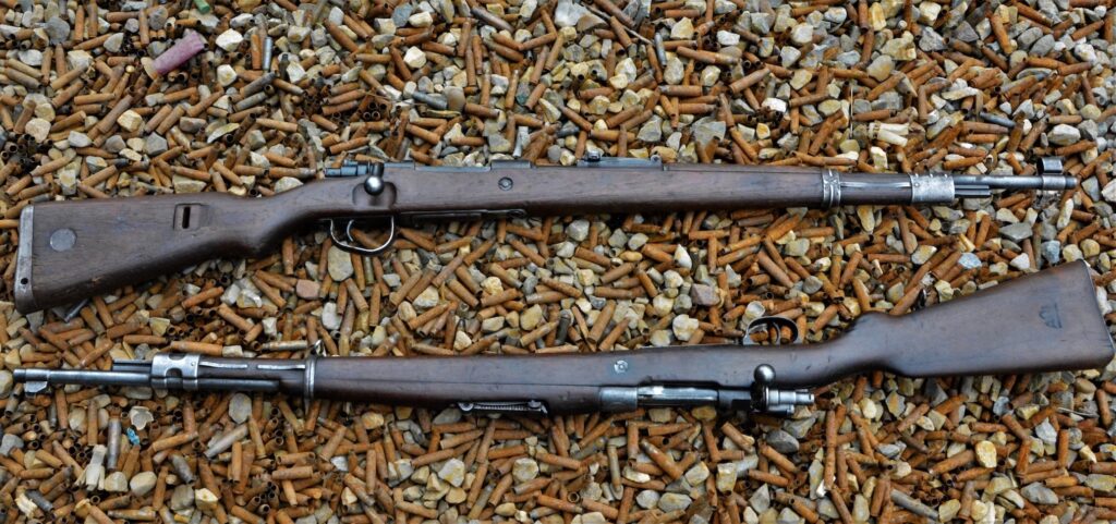 Looking closely at the receiver of the Czech K98k you can see the Nazi eagle and lion proof making this an early post-war example of Czech export.