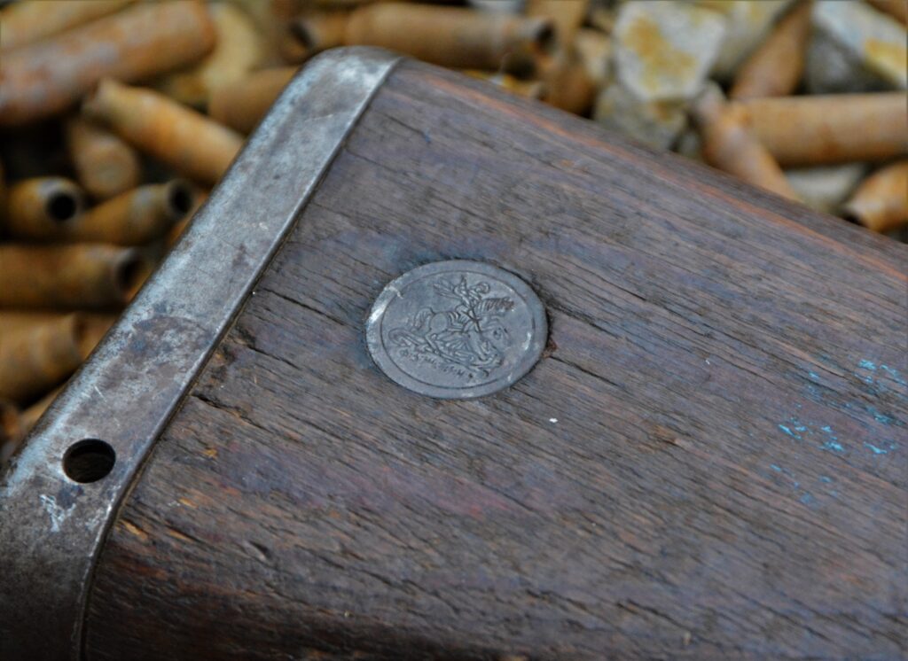 A St. George’s coin is planted solidly into the stock of the post-war K98k.